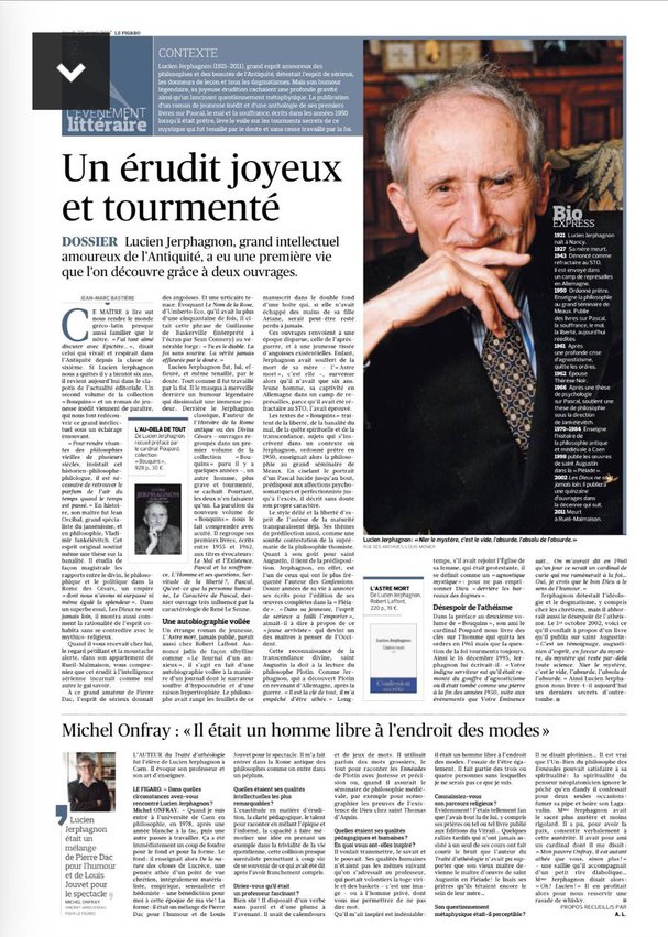 Jerphagnon détestait l’idéologie et le dogmatisme, y compris chez les chrétiens, mais il abhorrait aussi le désespoir de l’athéisme. Le 1er octobre 2002, voici ce qu’il confiait à propos d’un livre qu’il publia sur saint Augustin : « C’est un témoignage, augustinien d’esprit, en faveur du mystère, du mystère qui reste par-delà toute science. Nier le mystère, c’est le vide, l’absurde, l’absolu de l’absurde. » Ainsi Lucien Jerphagnon nous livre-t-il aujourd’hui ses derniers secrets d’outretombe.